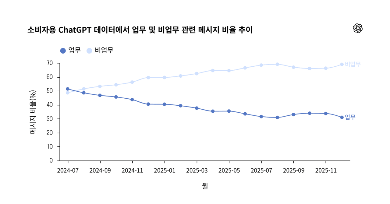 챗GPT 사용이 업무 중심에서 일상 상담·취미 등 개인 영역으로 확대되고 있습니다. 이는 기업용 구독 전환에는 부담이 될 수 있으나, 광고 사업 측면에서는 긍정적 신호로 평가됩니다. 개인적·감정적 상호작용이 늘어날수록 타깃 광고 가치가 높아질 수 있다는 분석입니다.